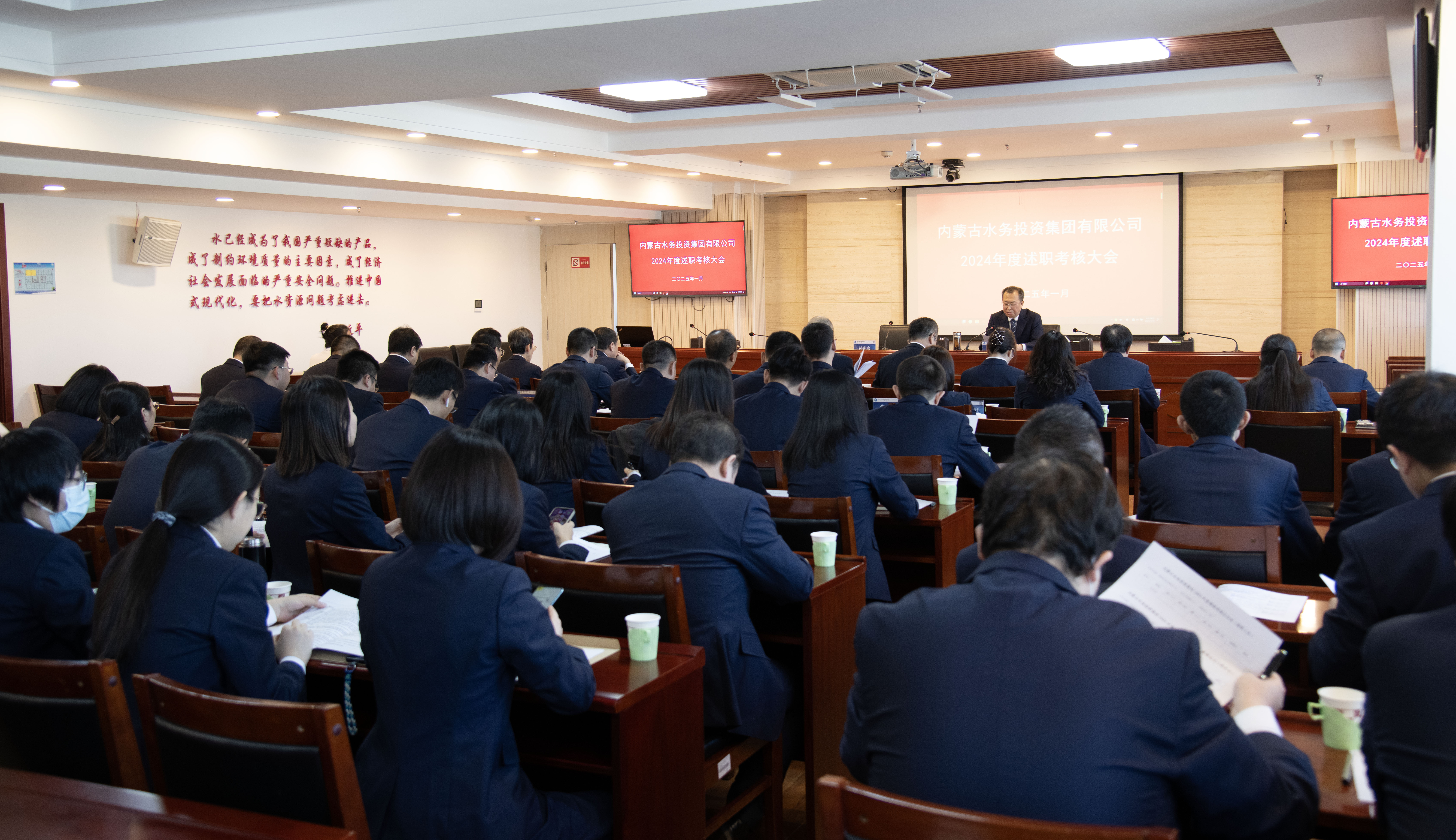 2025年1月10日上午,内蒙古水务投资集团有限公司召开了2024年度述职考核大会。集团公司总部在家全体人员参加了述职考核大会。受集团党委书记锡林同志委托,集团党委副书记李刚主持会议。