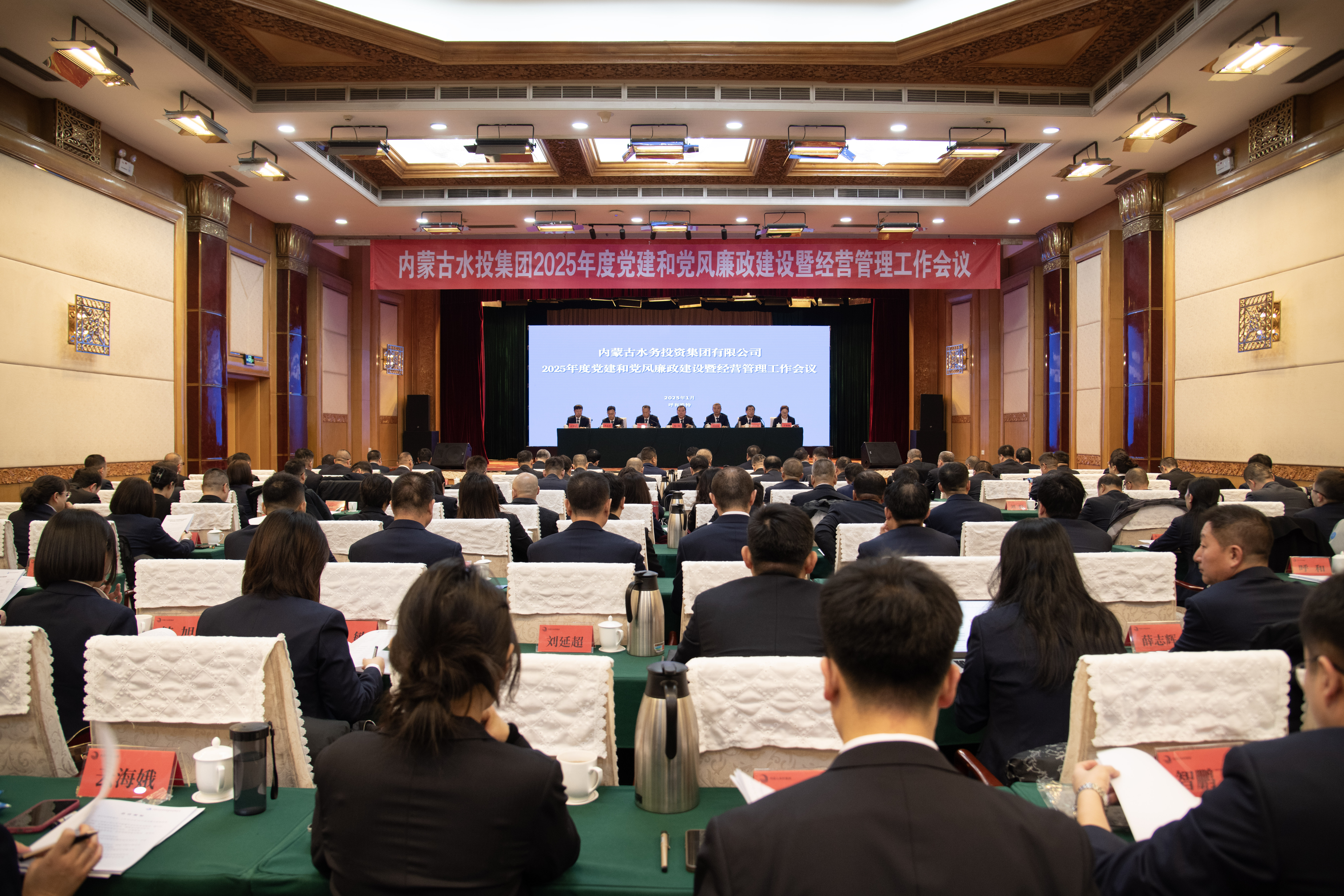 2025年1月22—23日,内蒙古水务投资集团有限公司在呼和浩特召开2025年度党建和党风廉政建设暨经营管理工作会议。集团党委书记、董事长锡林,总经理杨成瑜,党委委员、纪委书记石广瑞分别向大会报告了集团2024年度党建工作、生产经营工作以及党风廉政建设和反腐败工作开展情况,全面总结了2024年度工作取得的成绩、分析了内外部发展形势、指出了存在的主要问题,并对2025年度工作做了安排部署。会议由集团党委副书记李刚主持。